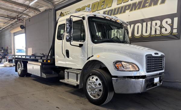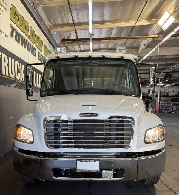 CALIFORNIA SALE ONLY- NO TRADES- Unit at Old pricing.M-2 Alum. 132" BBC Cab; Cummins 6.7L Engine 260HP 660lbs Torque. Cummins Exhaust brake.Horton HT650 Frontal Air On/off Engine fan. Clutch. 2100 RDS Automatic Transmission 6 Speed. Phillips-TEMRO 750 Watt/115 Volt block heater. dash Mounted T-Handle Cable Shift Control w/ park brake position. Synthetic Transmission Fluid.Synthetic 75W-90 Front Axle lube 10,000# front suspension. ARS-19.0-2 19,000# R-SERIES single rear axle. 4.88 Rear Axle Ratio.SYNTHETIC 75W-90 rear Axle lube. Airliner 18,000# Rear Suspension. Manual Dump Valve for Air Suspension. - Air brake package. Air Dryer w/Heater. 120KSI (Frame). 50 Gallon/Rectangular fuel tank aluminum: Alliance Fuel filter/Water separator with Primer pump. 255/70R22.5 Tires. Alum. 22.5X8.25 10-Hub pilot disc wheels. Dual West Coast Bright mirrors. 8" bright finish convex mirrors mounted under primary mirrors. Non-operating wing windows. Opal Gray Vinyl Interior. (2) Cup Holders; Heater, Defroster & Air Conditioner. Power windows. Single passenger seat. Air ride driver seat, Rear bench seat. Adjustable Tilt and Telescoping Steering Column. (6) IGN Controlled Extra Switches to junction block AND 1 Circuit at 30 Amp. Windshield Wiper motor with Delay marker light Switches self-canceling turn signal Switch with dimmer, Washer/Wiper & Hazard in Handle. Idle up, Cruise control. 22.5 Aluminum wheels 25,500 GVWR.