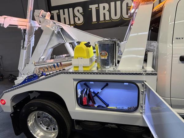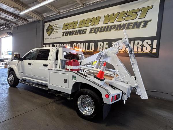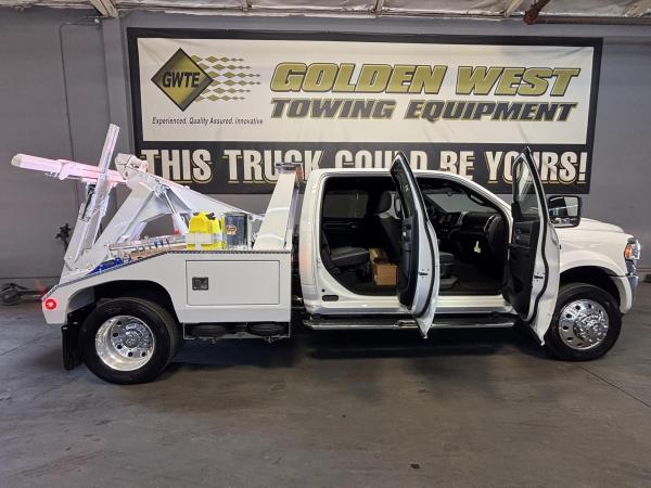 RAM 5500 SLT Crew cab. 360HP Automatic.. 750lbs Torque. 22-gallon Midship Fuel tank. Aisin AS68RC 6-speed Automatic. 4.44 Rear-end Ratio. 225/70R 19.5 F All Position FT, RR Traction. Aluminum wheels 19.5 x 6.0. AM/FM CD player. A/C Leather Wrap Steering wheel. Cruise Control. Daytime Running lights. Â Black Vinyl Floor Covering. Premium Cloth 40/20/40 Bench seat. 4-wheel ABS. Engine Retarder. Engine block heater. Power Mirrors. Keyless Entry-Dual front airbags. Tachometer. Trip Computer. 50,000lb Frame yield strength PSI. 60" CAB To AXLE... back up Camera. Cab Steps, Chrome bumper. Factory fog lights, caps, and covers. 19,500 GVWRCentury 311 G1 Single Winch. Integrated Boom & Wheel Lift System Vulcan Hydraulic Hook-Up. Clutch Pump In-Cab Remote Control Pendant on Cord with 8 Functions. Dual Manual Controls 1 Pair of Safety Straps. (2) 3/8" x 100' Cable Assembly Tool Compartment, Left & Right Hand Side Adjustable Modular Body Power Boom Elevation with Holding Valve, Dual 8,000 lb. Variable Speed Hydraulic Winches Safety Chains in Rear Pockets. 5/16, Grade 70. 360° Directional Boom End Swivel Cable Tensioner. Federal Standard #108 Light Group Wiring Harness with Junction Box. Mud Flaps Back-Up Alarm. Power Fold for Stinger Storage Self Centering Crossbar with 3" Pivot Pin r.oller Guided Hose Tracking System Pre-assembled and Tested. Boom Specifications; Lift Height at Maximum Elevation Retracted 78", Extended 105" Reach Past Tailgate Minimum Elevation (Extended) 50" Maximum Elevation (Extended) 22" Boom Rating at Boom Swivel Retracted 16,000 lbs. Extended 4,000 lbs. Maximum Boom Elevation 33° WHEEL LIFT SPECIFICATIONS Retracted Distance from Tailgate at Normal Tow Position 51" Extended Distance from Tailgate at Normal Tow Position 85 1/2" Maximum Hydraulic Extension 33 3/4" Lift Rating 4,000 lbs. Tow Rating 7,500 lbs Serial # 3111C241877