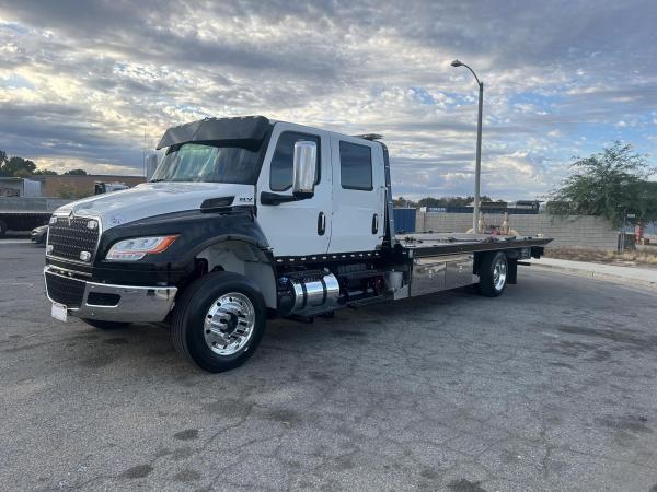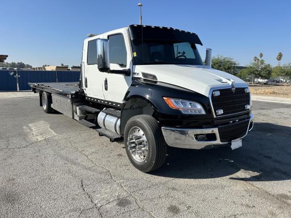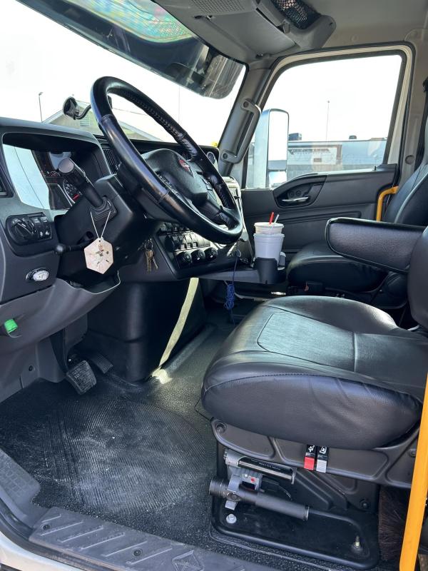 2023 International Model MV Crew cab. Cummins ISB 6.7L, 325HP @ 2,300 rpm, 750 lb-ft @ 1,600 rpm, Allison RDS-3000 6 Speed Auto, Air Brakes, Air Dryer Heater, Exhaust Brake, Front Axle: Dana-Spicer I-Beam 10,000lb w/ Shock Absorbers, Rear Axle: Dana-Spicer 21,000lb rear differential lock. , 21,000lb Air Ride Suspension, 4.88 Rear Axle Ratio, Chrome Bumper, black Grille, Air Ride Driver Seat,& Passenger Seat, rear bench seat. Idle Up, Cruise Control, Tilt-Wheel, AM/FM/CD/MP3 w/ Bluetooth, Air Horn, Engine Block Heater, Dual -50 Gal Alum Fuel Tanks, 7 Gal DEF Tank, Power Windows, Power Door Locks, Power heated Mirrors. A/C, 255/70R22.5 Tires w/ 22.5 Alum Wheels, Cup holders.Visor 25,500 GVWRKeyless Entry, Chrome Grab handles on Cab. Air Disc Package.