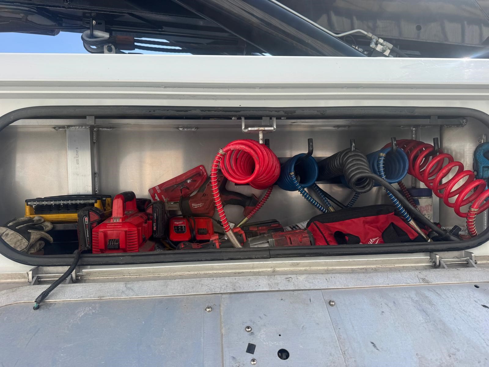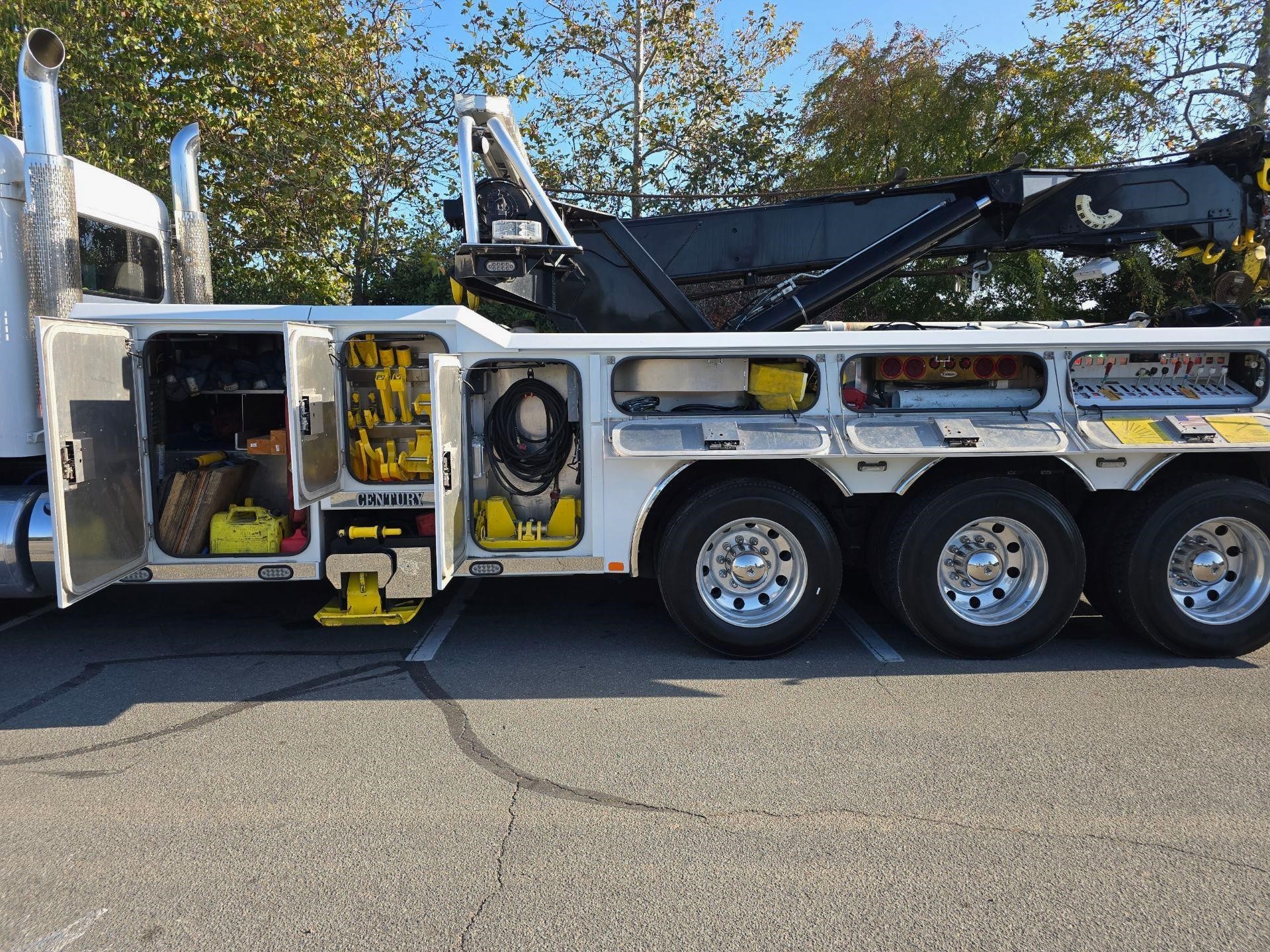 Pete 389 Extended cab. ISX15 565 HP Fuller RTLO16918B 18 Speed. .20,000 lb, 3.5in Drop, 20.000lb Front suspension. 26 in Aluminum 135 Gallon Fuel Tank LH U/C, DEF Tank Small, Alum Cab 123in BBC Alum Hood SFFA, 10-3/4in Steel Rails 403-444in.Full Steel Inner Liner.Heavy-Duty Iron Front Spring Brackets Fwd & Rear.Dana Spicer 46,000 lb, Ratio 3.91 Rear Axle. Diff Lock Both Axles. SBM Valve. Synthetic Axle Lubricant All Axles.Neway ADZ252 52,000 lbs, 54in -Dual Leveling Valves Bendix AD-IS Air Dryer with Heater. Polished Alum Air Tanks Outside Frame Rails.Aluminum Space Saver Battery Box LH BOC.DPF Cab Entry Aluminum Non-Slip Step RH Under Cab. Heavy Duty External Tow Eye. Intebrake (Furnished on Engine).(2) 13in SS Air Cleaners, Cowl Mtd, SS Caps. Thermal Insulation Package in Cab.Thermal Insulation Pkg - Adjustable Steering Column - Tilt/Telescope.Leather Steering Wheel. Platinum Interior - Grey . Power Lift Windows - Both Doors. Combo Fresh Air Heater/Air Conditioner. Cup Holder (Floor Mounted).Outside Sunvisor Stainless Steel. Aero Mirrors Ea Side Htd & Mtrzd 4-Way Adjustable. (4) Air Horns Rect-(2) 26in & (2) 29in. ConcertClass Audio System with CD. Bright Bezel Gauges ipo Black. Marker Lights (5) Bus LED Bullet. Fog Lights (2) Peterbilt. (1) 6in Spotlight Round Halogen LH.345" Wheelbase. Suspension Pressure Gauge. Stainless Steel Gravel Guards. 10 Inch Extension for Ultra Day Cab. Air Disc brake package. Diff. Lock Tandem Axles with speed Inte. RLOCK -Upgrade Clutch Torque Capacity. Peterbilt Keyless Entry, Platinum Interior - Arctic Gray, with SmartNav. Rubber Floor ipo Carpet (Black Only)., Cobra 40 Channel CB Radio w/Integral Speaker, Unibilt Cab Air Suspension. (2) Peterbilt Fog Lights. : Pusher axle Tire. (4) BR 14ply 285/75R24.5 M726ELA 2,679 540, Front tires.: MN 20ply 385/65R22.5 X Multiway HD XZE. RR: BR 16ply 11R24.5 M726ELA, (1) non-steerable pusher axle. 345" Wheelbase. 86,600 GVWR Keyless entry