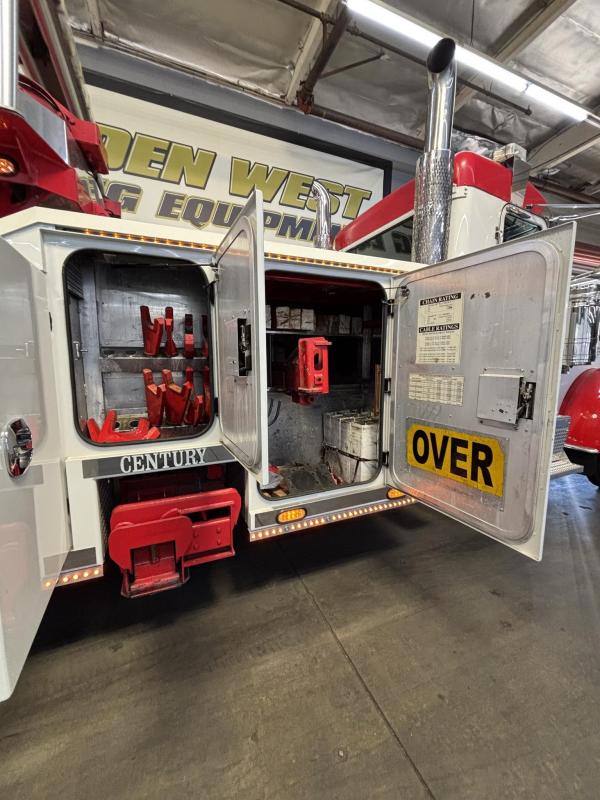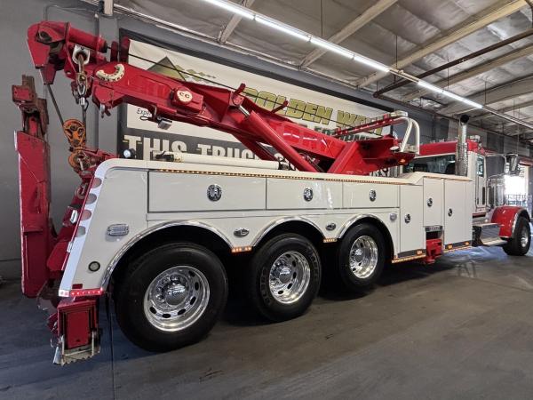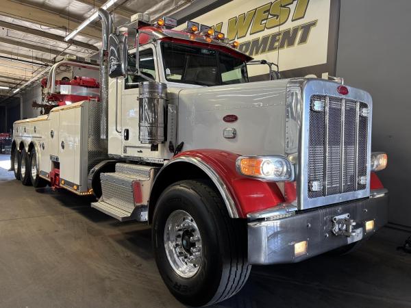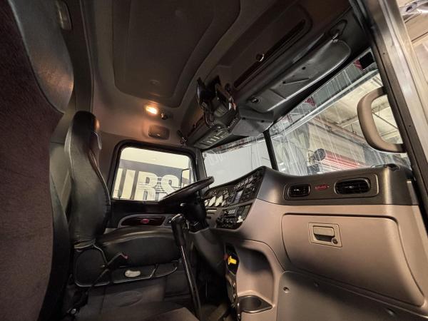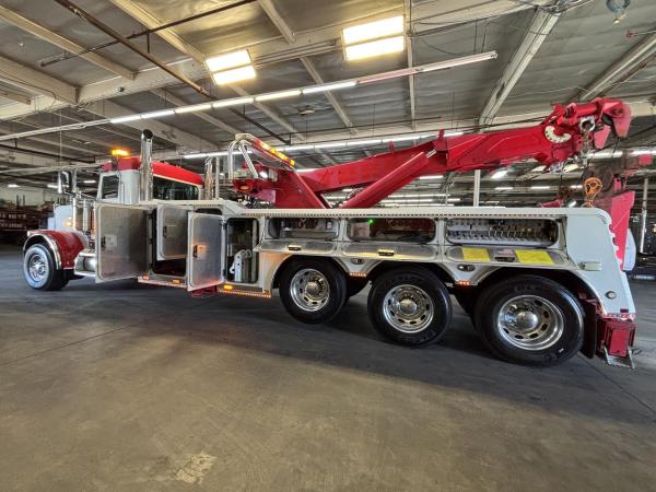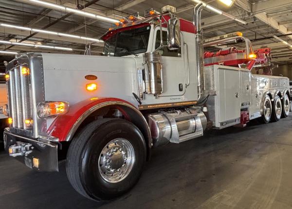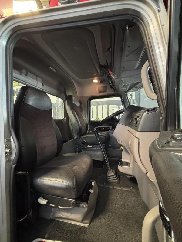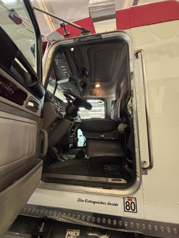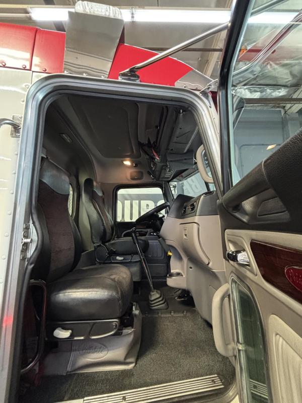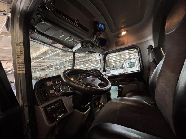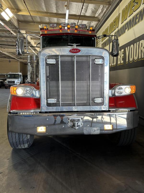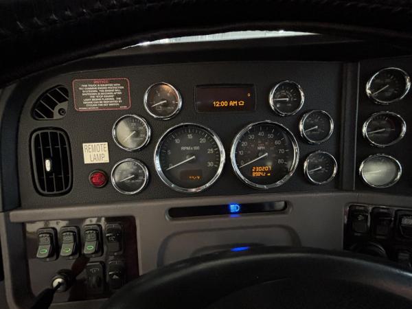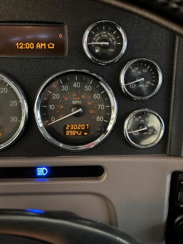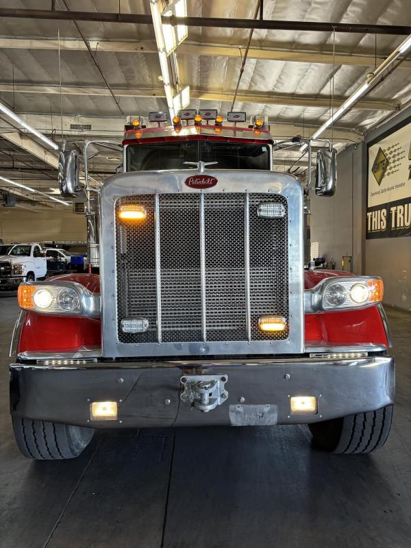 Pete 389 Extended cab. ISX15 550 HP Fuller RTLO16918B 18 Speed. .20,000 lb, 3.5in Drop, 20.000lb Front suspension. 26 in Aluminum 135 Gallon Fuel tank RH-135 Gallon Fuel Tank LH U/C, DEF Tank Small, Alum Cab 123in BBC Alum Hood SFFA, 10-3/4in Steel Rails 403-444in.Full Steel Inner Liner.Heavy-Duty Iron Front Spring Brackets Fwd & Rear.Dana Spicer 46,000 lb, Ratio 4.30 Rear Axle. Diff Lock Both Axles. SBM Valve. Synthetic Axle Lubricant All Axles.46,000lb Air Trac Pete Air ride., 54in -Dual Leveling Valves Bendix AD-IS Air Dryer with Heater. Polished Alum Air Tanks Outside Frame Rails.Aluminum Space Saver Battery Box LH BOC.DPF Cab Entry Aluminum Non-Slip Step RH Under Cab. Heavy Duty External Tow Eye. Intebrake (Furnished on Engine).(2) 13in SS Air Cleaners, Cowl Mtd, SS Caps. Thermal Insulation Package in Cab.Thermal Insulation Pkg - Adjustable Steering Column - Tilt/Telescope.Leather Steering Wheel. Platinum Interior - Grey . Power Lift Windows - Both Doors. Combo Fresh Air Heater/Air Conditioner. Cup Holder (Floor Mounted).Outside Sunvisor Stainless Steel. Aero Mirrors Ea Side Htd & Mtrzd 4-Way Adjustable. (4) Air Horns Rect-(2) 26in & (2) 29in. ConcertClass Audio System with CD. Bright Bezel Gauges ipo Black. Marker Lights (5) Bus LED Bullet. Fog Lights (2) Peterbilt. (1) 6in Spotlight Round Halogen LH. Suspension Pressure Gauge. Stainless Steel Gravel Guards. 10 Inch Extension for Ultra Day Cab. Air Disc brake package. Diff. Lock Tandem Axles with speed Inte. RLOCK -Upgrade Clutch Torque Capacity. Peterbilt Keyless Entry, Platinum Interior - Arctic Gray, with SmartNav. Rubber Floor ipo Carpet (Black Only)., Cobra 40 Channel CB Radio w/Integral Speaker, Unibilt Cab Air Suspension. (2) Peterbilt Fog Lights. : Pusher axle Tire. (4) BR 14ply 285/75R24.5 M726ELA 2,679 540, Front tires.: MN 20ply 385/65R22.5 X Multiway HD XZE. RR: BR 16ply 11R24.5 M726ELA, (1) non-steerable pusher axle. 345" Wheelbase. 86,600 GVWRCentury 1140R