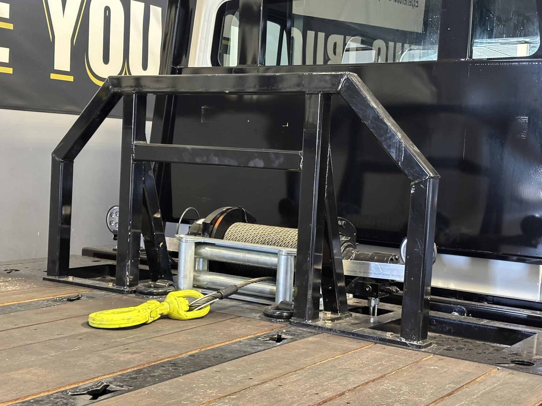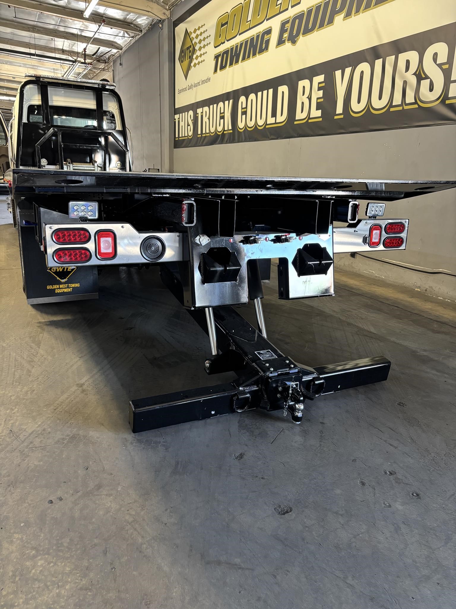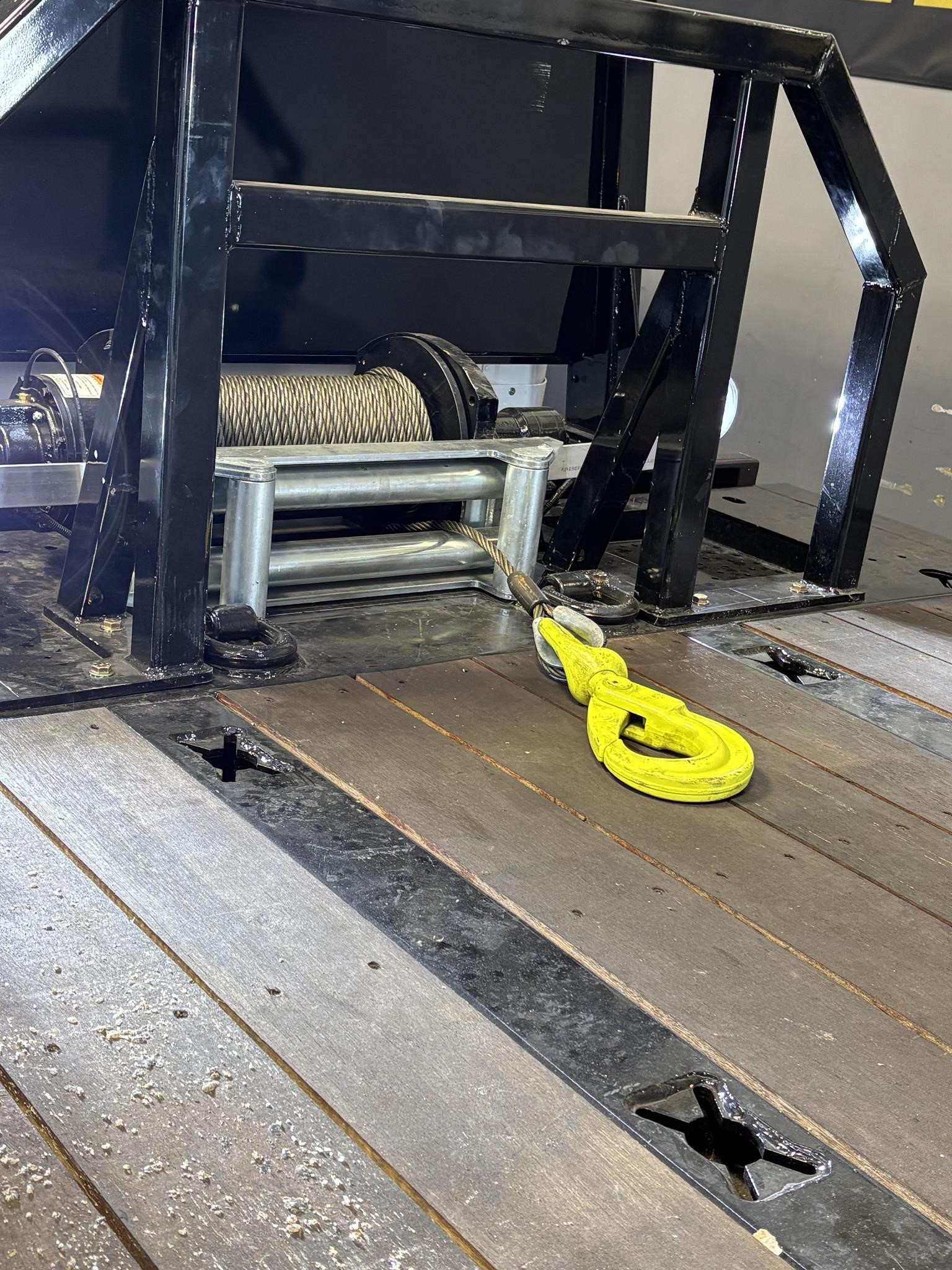 3/16” Deck Plate, Bed Anti-Tilt Feature, Winch Air Clutch Release, Dual Tilt Cylinders, Cable Tensioner , Wood floor. -Pintle Hitch