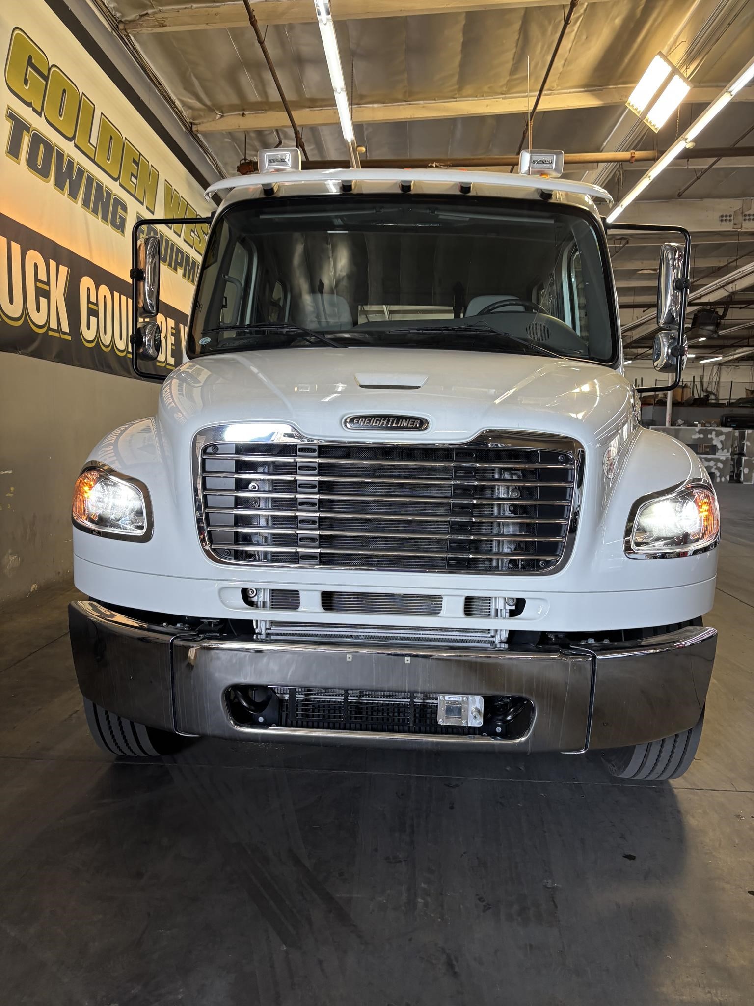 2024 FRTR M-2 154" BBC Cab High Roof. 360HP L9 1150lbs or Torque, EATON FULLER FRO-14210C 10 speed with overdrive. 3 Stage C Brake- Jacobs. 12,000lb front axle. 12,000lb front suspension. 21,000lb Rear axle, 4.11 Rear End ratio. Driver-controlled locking rear differential. block heater. Air dryer. 275/80R 22.5 Tires. Aluminum wheels. Chrome 3-piece bumper. Dual grab handles side of cab. Premium Springhausen highback air Suspension driver and Passenger seats with 2 Air lumbar, Integrated cushion extension, with Arm rests, Tilt & & adjustable. Folding Rear bench seat. Idle up, Cruise control. Air cab mounts.Dual 26" Hadley Air Horns. LED headlights, Heated Power Mirrors. Composite Sunvisor, RH* LH Operating wing windows. Power door locks. Tilt & Telescoping wheel. Woodgrain dash option. dash mounted PTO Switch. AM/FM/WB world tuner radio with sirus XM bluetooth ipod interface, USB & auxilary inputs dash mounted radio, 2 speakers in cab.