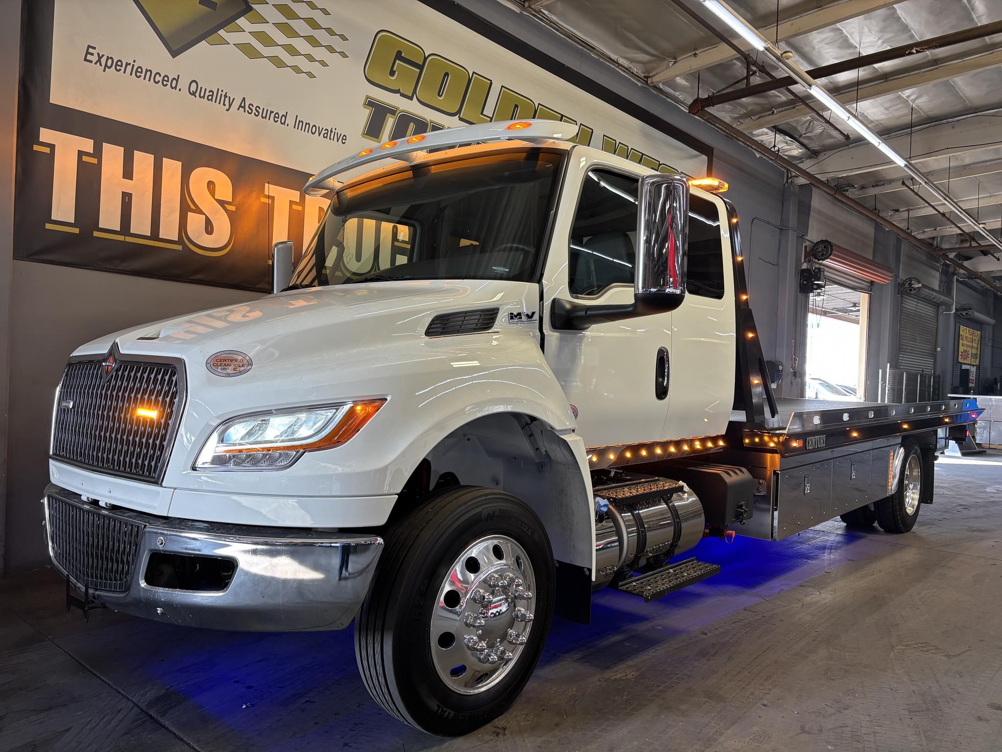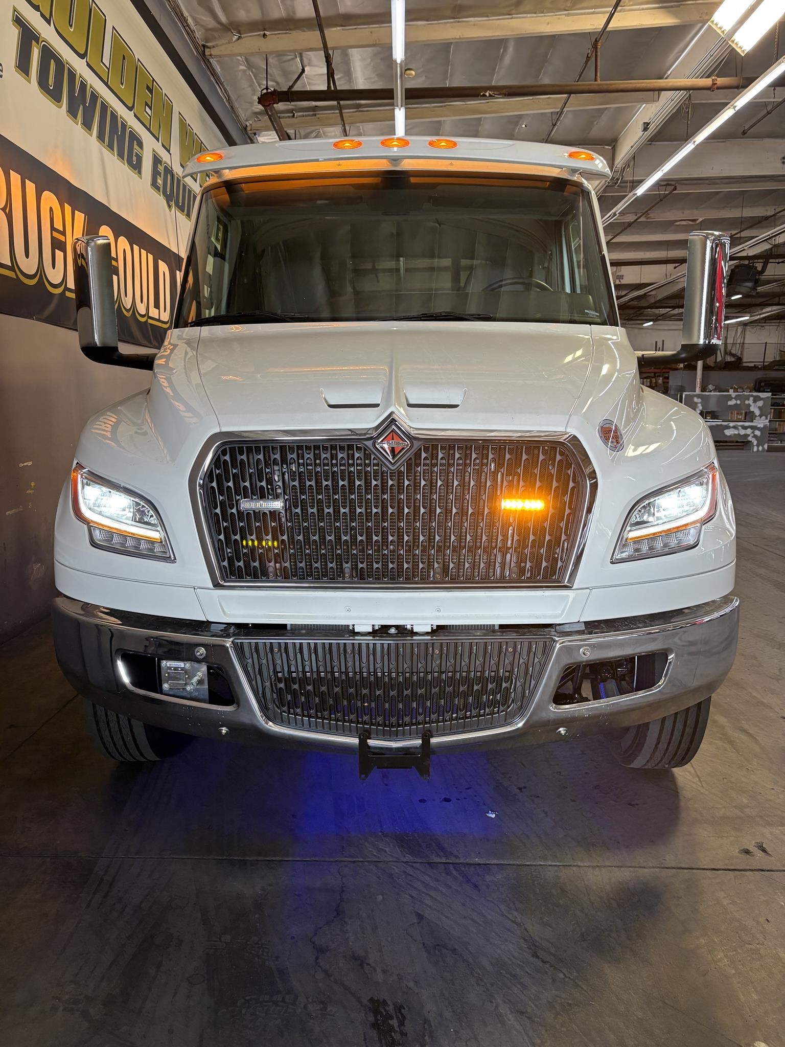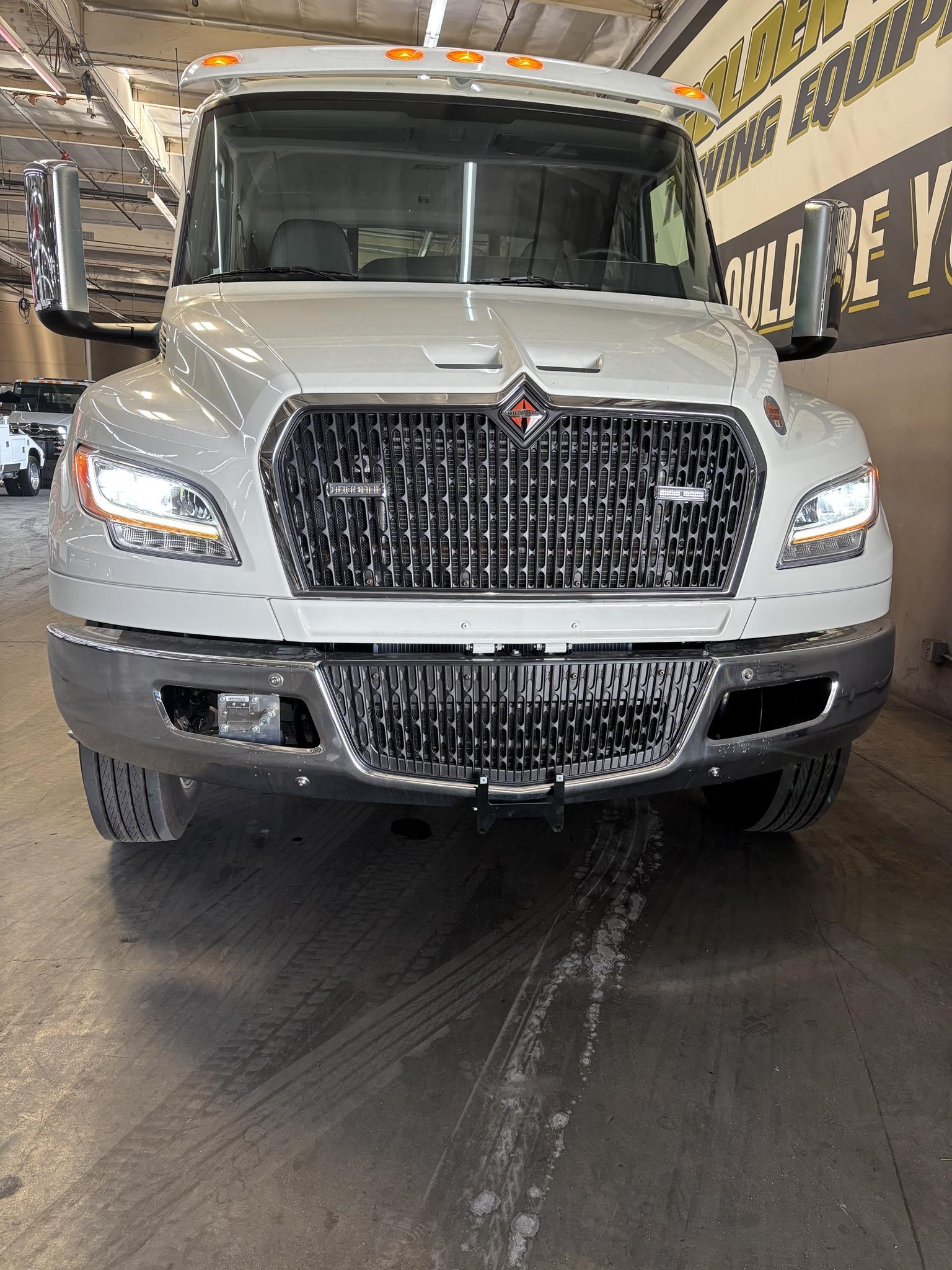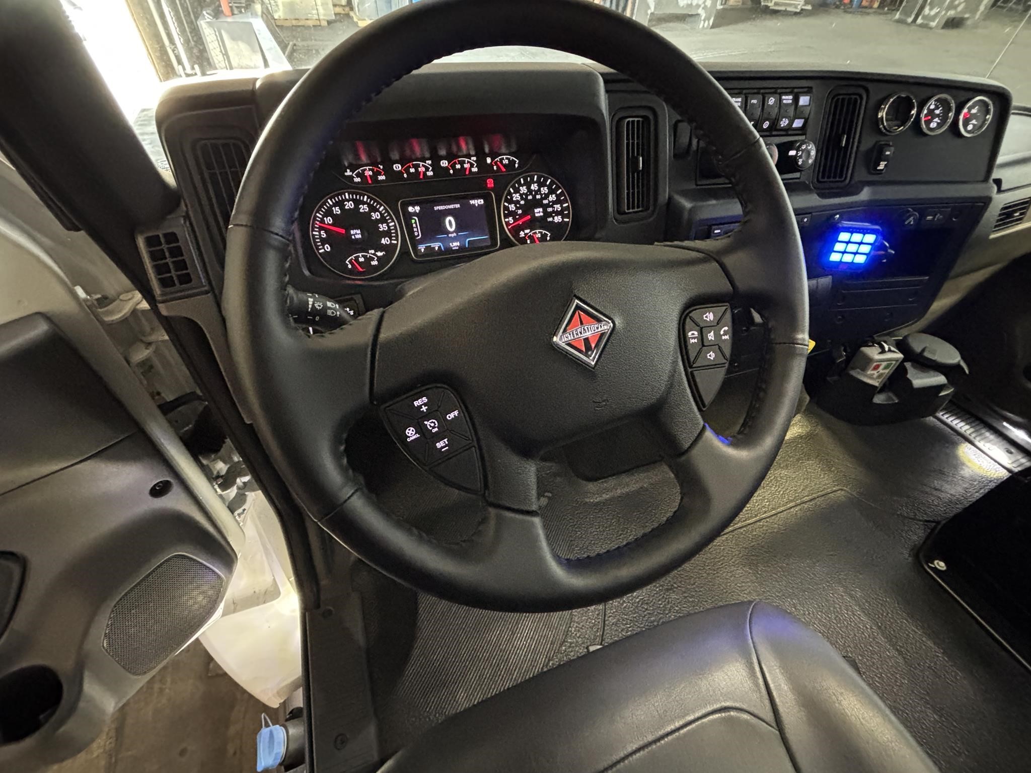 2026 International Model MV Extended cab. Cummins ISB 6.7L, 260HP @ 2,300 rpm, 660 lb-ft @ 1,600 rpm, Allison RDS-2200 6 Speed Auto, Air Brakes, Air Dryer Heater, Exhaust Brake, Front Axle: Dana-Spicer I-Beam 8,000lb w/ Shock Absorbers, Rear Axle: Dana-Spicer 19,000lb rear axle.. , 20,000lb Air Ride Suspension, 4.88 Rear Axle Ratio, Chrome Bumper, black Grille, Air Ride Driver Seat,& Passenger Seat, rear bench seat. Idle Up, Cruise Control, Tilt-Wheel, AM/FM/CD/MP3 w/ Bluetooth, Air Horn, Engine Block Heater, Dual 40-50 Gal Alum Fuel Tanks, 7 Gal DEF Tank, Power Windows, Power Door Locks, Power heated Mirrors. A/C, 255/70R22.5 Tires w/ 22.5 Alum Wheels, Cup holders.Visor 25,500 GVWR,