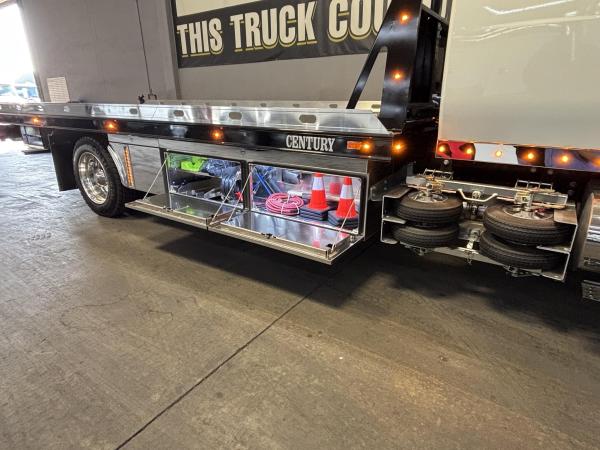 Century Steel LCG (Low Center of Gravity) Carrier w/ Wheel Lift, 3/16 Deck Plate, 3x2 Corten Tube Crossmembers on 8 inch Centers, (4) Rear Chain Locks, (2) Front Chain Locks, (6) Floor Plate Chain Locks (3 per side), 8,000lb Worm Gear Winch, 3/8" x 50' Winch Cable, Illuminated Dual Controls, FMVSS 108 Lamp Group Shock Mounted Lighted, Direct Mount Pump, Cable Roller Guide w/ Tensioner, Winch Free Spool Extension, Back-Up Alarm, (2) Safety Chains, Mechanical Anti-tilt, Black Body Paint, 102" Wide Body, Inboard Tilt Cylinders, Floor Level Roll Formed w/ Punched Stake Pockets, 4,000lb Wheel Lift w/ Releasable L Arms, Fully Hydraulic Wheel Lift, (2) Safety Straps & Ratchets, (2) Rear Safety Chains, Body Lock w/ Nylatron Toller Bearings, & 12,000lb Deck Load Rating. Body SN# ST12L2D251835