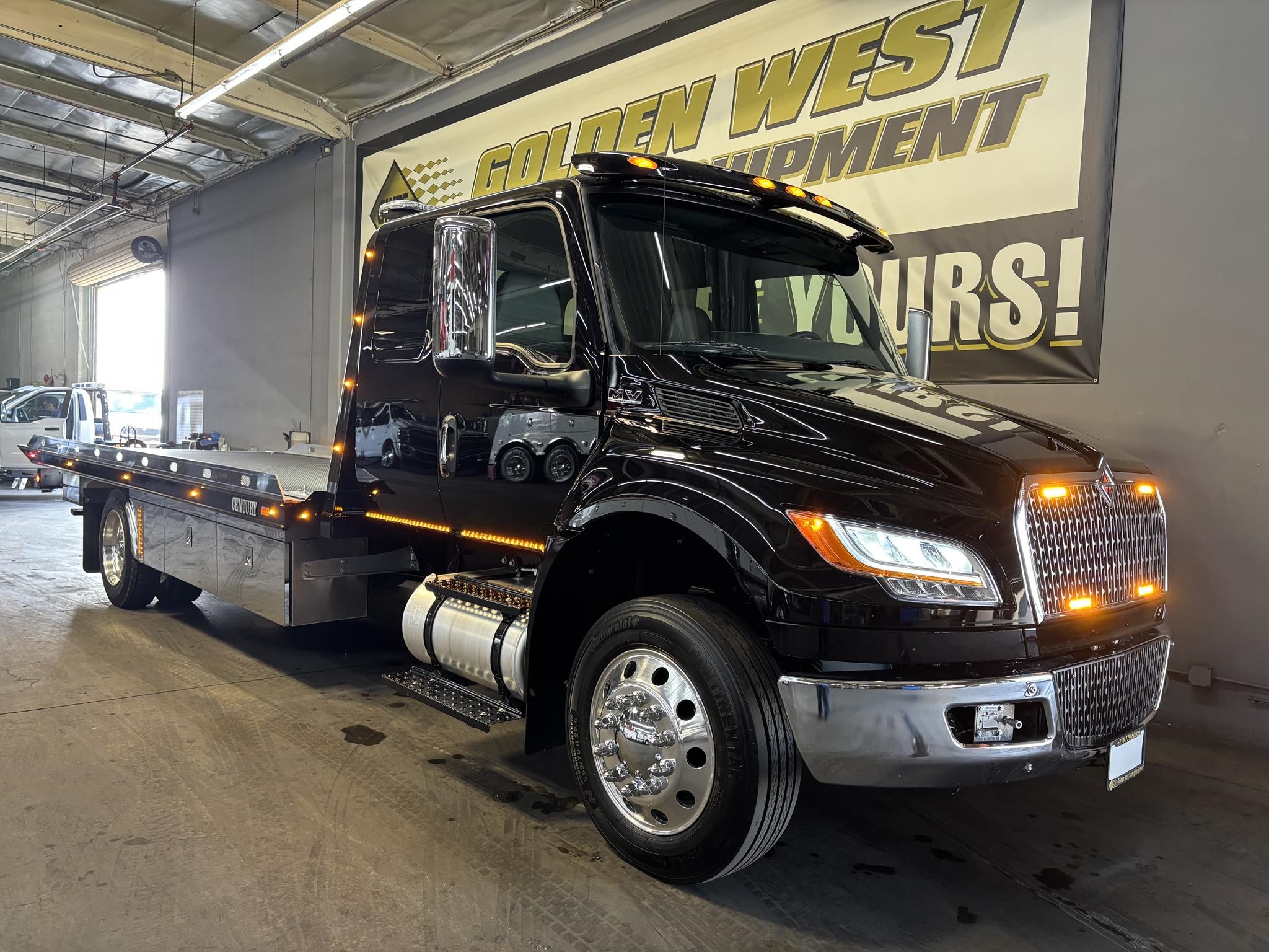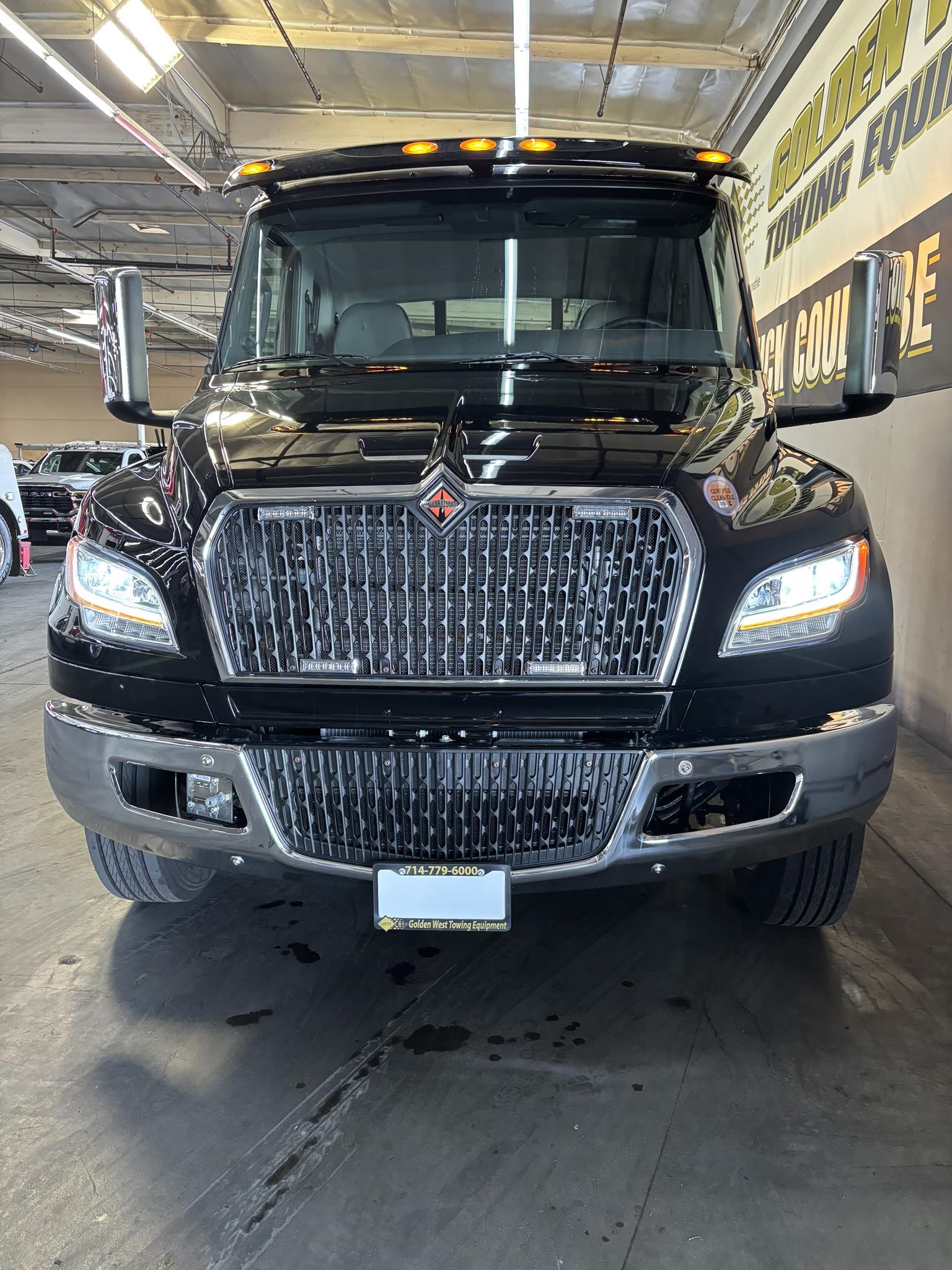 2026 International Model MV Extended cab. Cummins ISB 6.7L, 260HP @ 2,300 rpm, 660 lb-ft @ 1,600 rpm, Allison RDS-2200 6 Speed Auto, Air Brakes, Air Dryer Heater, Exhaust Brake, Front Axle: Dana-Spicer I-Beam 8,000lb w/ Shock Absorbers, Rear Axle: Dana-Spicer 19,000lb rear axle.. , 20,000lb Air Ride Suspension, 4.88 Rear Axle Ratio, Chrome Bumper, black Grille, Air Ride Driver Seat,& Passenger Seat, rear bench seat. Idle Up, Cruise Control, Tilt-Wheel, AM/FM/CD/MP3 w/ Bluetooth, Air Horn, Engine Block Heater, Dual 40-50 Gal Alum Fuel Tanks, 7 Gal DEF Tank, Power Windows, Power Door Locks, Power heated Mirrors. A/C, 255/70R22.5 Tires w/ 22.5 Alum Wheels, Cup holders.Visor 25,500 GVWR,