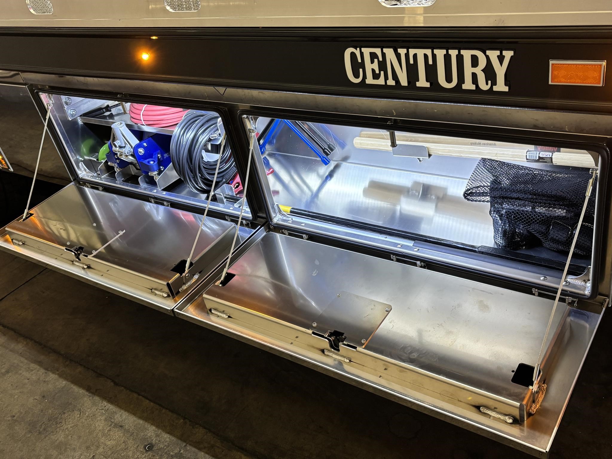 Century Steel LCG (Low Center of Gravity) Carrier w/ Wheel Lift, 3/16 Deck Plate, 3x2 Corten Tube Crossmembers on 8 inch Centers, (4) Rear Chain Locks, (2) Front Chain Locks, (6) Floor Plate Chain Locks (3 per side), 8,000lb Worm Gear Winch, 3/8" x 50' Winch Cable, Illuminated Dual Controls, FMVSS 108 Lamp Group Shock Mounted Lighted, Direct Mount Pump, Cable Roller Guide w/ Tensioner, Winch Free Spool Extension, Back-Up Alarm, (2) Safety Chains, Mechanical Anti-tilt, Black Body Paint, 102" Wide Body, Inboard Tilt Cylinders, Floor Level Roll Formed w/ Punched Stake Pockets, 4,000lb Wheel Lift w/ Releasable L Arms, Fully Hydraulic Wheel Lift, (2) Safety Straps & Ratchets, (2) Rear Safety Chains, Body Lock w/ Nylatron Toller Bearings, & 12,000lb Deck Load Rating. Body SN# ST12L2F253007