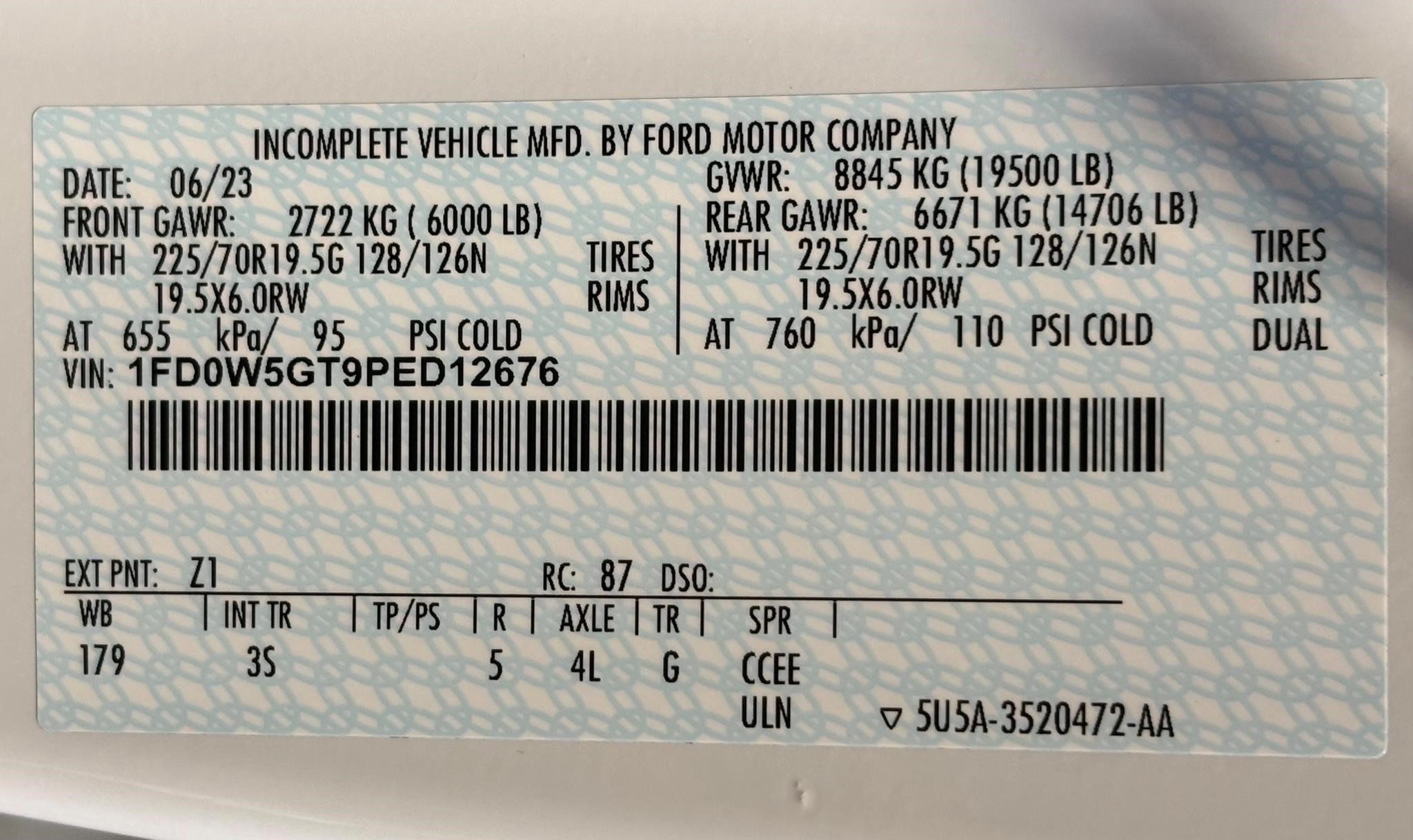Ford 550 XLT 475HP 1050 Torque. 6.7L Diesel. 475HP Torque Shift 10 Speed Automatic. Power windows, power locks. Idle up, Cruise. Vinyl - 40/20/40 Split Bench seat, Rear Bench seat. Aluminum wheels. 225/70R 19.5 Tires. AM/FM w/Mp player. Keyless Entry. Block heater. 26.5-gallon Fuel tank. Platform running boards. Rear View Camera. Upffitter switches. low deflection package. PTO Provision- 19,50lb GVWR, slip ratio 4.10. Engine block