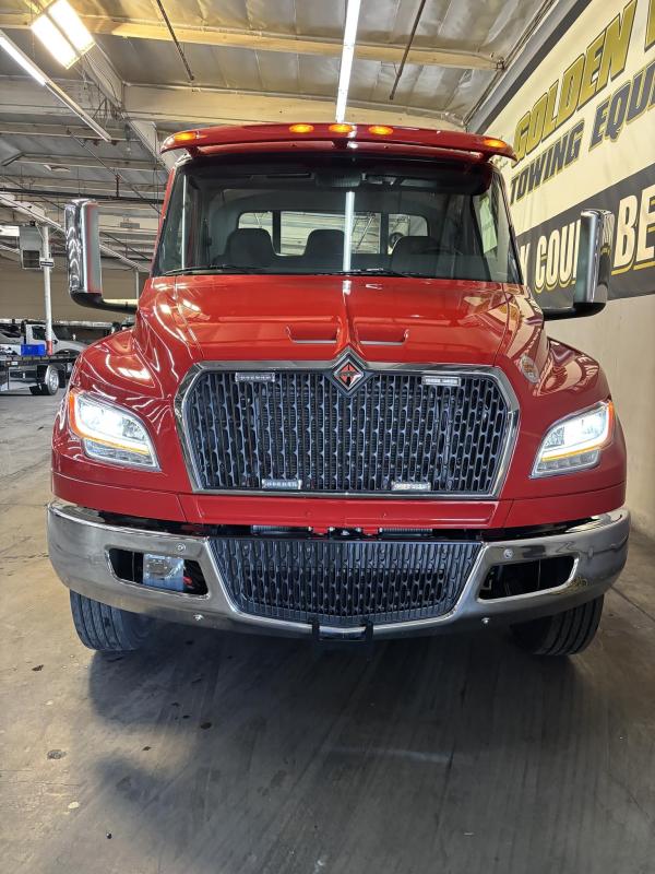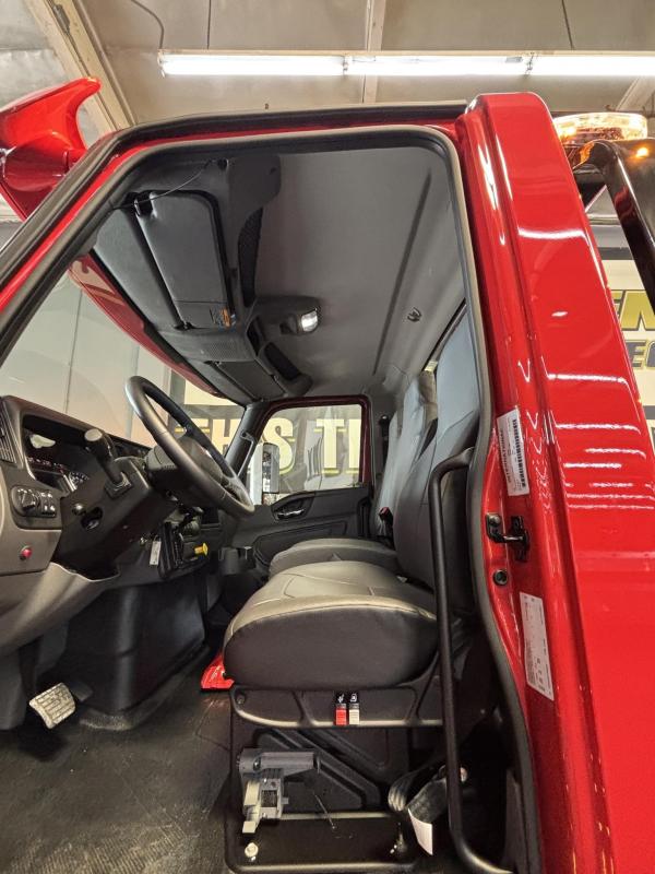 International Model MV Regular. Cummins ISB 6.7L, 260HP @ 2,300 rpm, 660 lb-ft @ 1,600 rpm, Allison RDS-2200 6 Speed Auto, Air Brakes, Air Dryer Heater, Exhaust Brake, Front Axle: Dana-Spicer I-Beam 8,000lb w/ Shock Absorbers, Rear Axle: Dana-Spicer 19,000lb rear , 20,000lb Air Ride Suspension, 4.88 Rear Axle Ratio, Chrome Bumper, black Grille, Air Ride Driver Seat,& Passenger Seat, rear bench seat. Idle Up, Cruise Control, Tilt-Wheel, AM/FM/CD/MP3 w/ Bluetooth, Air Horn, Engine Block Heater, Dual 40-50 Gal Alum Fuel Tanks, 7 Gal DEF Tank, Power Windows, Power Door Locks, Power heated Mirrors. A/C, 255/70R22.5 Tires w/ 22.5 Alum Wheels, Cup holders.Visor 25,500 GVWR,.