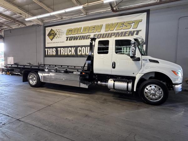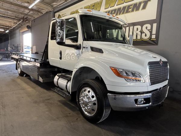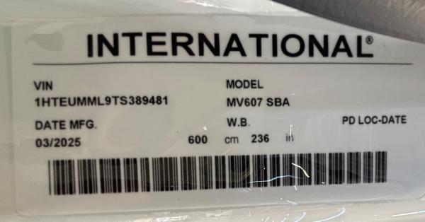 2026 International Model MV Extended cab. Cummins ISB 6.7L, 260HP @ 2,300 rpm, 660 lb-ft @ 1,600 rpm, Allison RDS-2200 6 Speed Auto, Air Brakes, Air Dryer Heater, Exhaust Brake, Front Axle: Dana-Spicer I-Beam 8,000lb w/ Shock Absorbers, Rear Axle: Dana-Spicer 19,000lb rear axle.. , 20,000lb Air Ride Suspension, 4.88 Rear Axle Ratio, Chrome Bumper, black Grille, Air Ride Driver Seat,& Passenger Seat, rear bench seat. Idle Up, Cruise Control, Tilt-Wheel, AM/FM/CD/MP3 w/ Bluetooth, Air Horn, Engine Block Heater, Dual 40-50 Gal Alum Fuel Tanks, 7 Gal DEF Tank, Power Windows, Power Door Locks, Power heated Mirrors. A/C, 255/70R22.5 Tires w/ 22.5 Alum Wheels, Cup holders.Visor 25,500 GVWR,Extended Warranties.- Engine Warranty: 5 yr / 300k miles PPI & after treatment, and Tranny Warranty: 7 yr / Unlimited Miles.