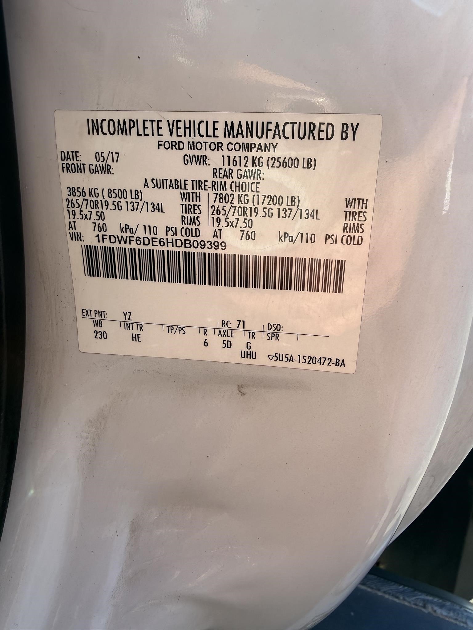 - VIN: 1FDWF6DE6HDB09399