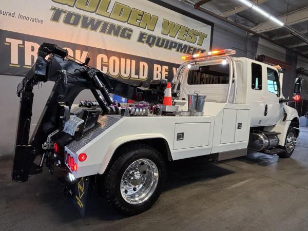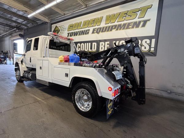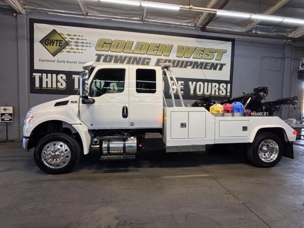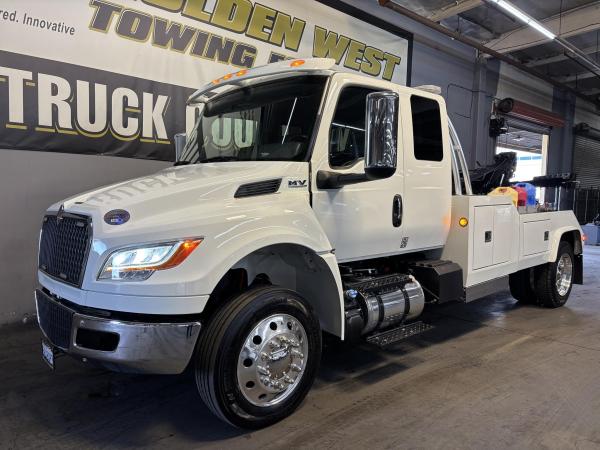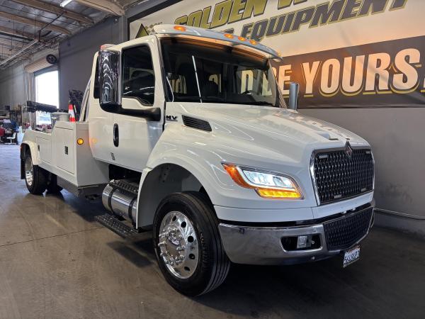 2023 International MV EC 300HP 6.7L Cummins. Allison Automatic. Exhaust Brake. Air Brake Package. Tractor Package. Dual aluminum 50-gallon fuel tanks, Visor, Chrome bumper, Aluminum wheels, Air Ride driver seat, Rear bench seat, Idle up, Cruise control. Tilt wheel, Power windows, Power locks, Power Mirrors, PTO Switch. Aux 5 Switches. Leather wrap Steeering wheel. 8,000lb front axle, 19,000lb Rear axle, 20,000lb rear air-ride suspension with Dump. AM/FM WB, Clock, Bluetooth, USB.Stereo - with 4 speakers-Cab. Block heater. Trailer connector, Air Dryer with Heater, Trailer connectors, Air horn, Electric horn. Air Ride suspension. 108" CAB TO AXLE. 25,500 GVWROriginally purchased with: 5-year 300K PPI Engine and Emissions. 7-year Allison Warranty- Warranty start date 09/30/2026