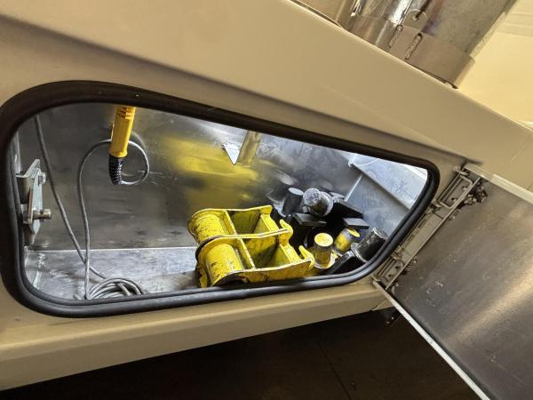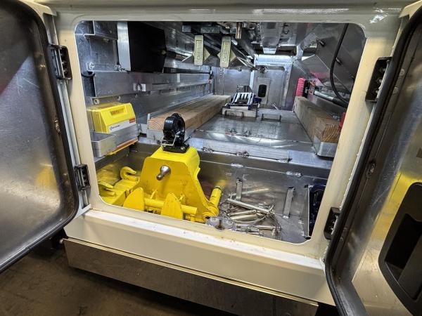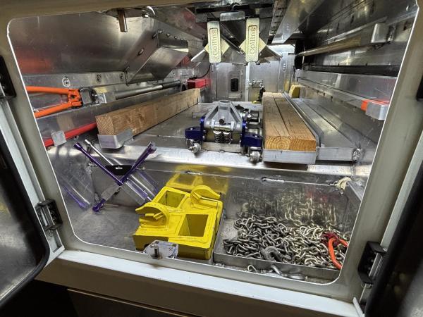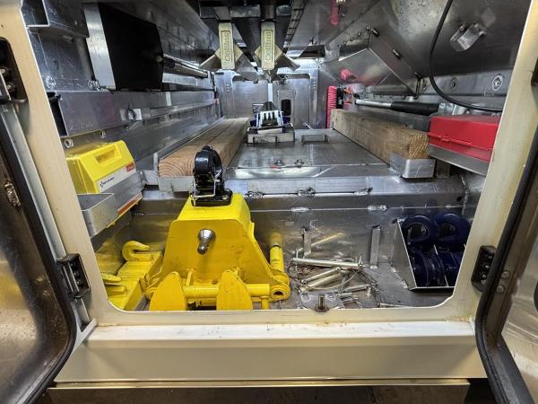 Rating (first layer of drum) each Winch, 12,000 lbs., Diameter and Length (Each Winch), 7/16” x 150' IWRC, 60” Aluminum Modular Body with 1 Compartment Per Side, Safety Chains, 5/16 Grade 70, Safety Chain Storage Pockets