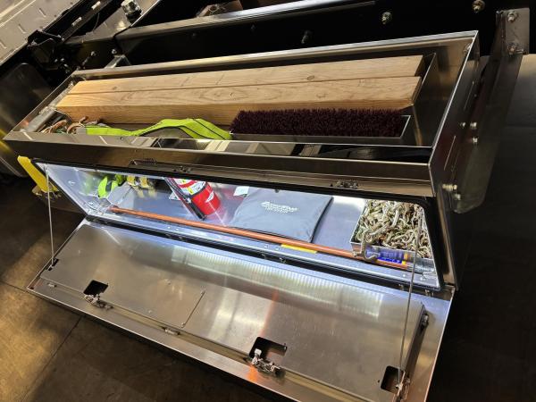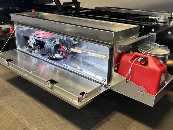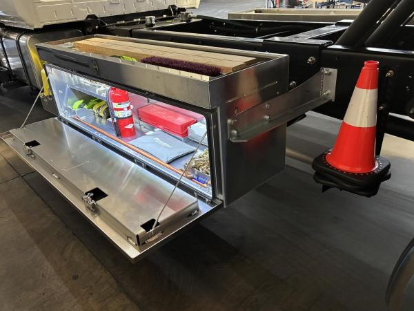 TB: Toolbox, Aluminum, 69", Passenger-Side, SS Doors, Integrated Top Tray, Equipment Brackets