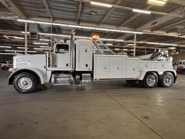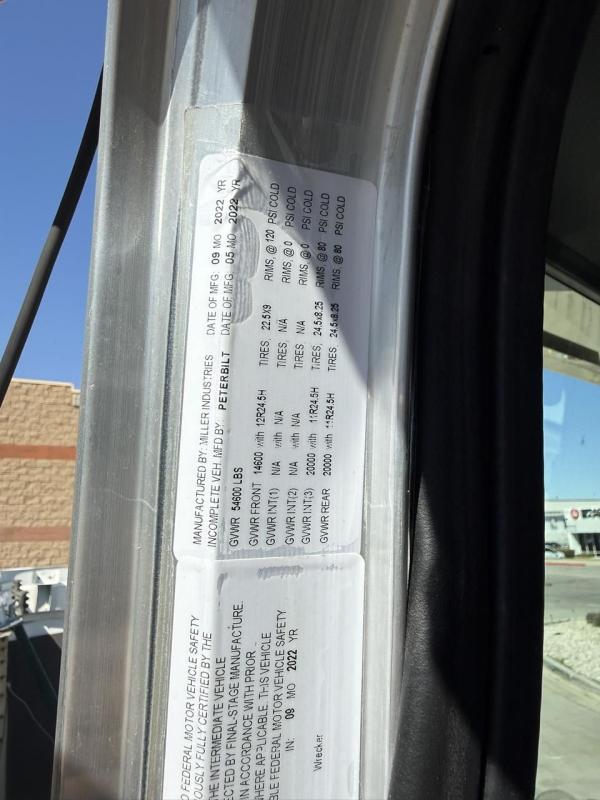 2023 Peterbilt 389 Cummins ISX 525HP. Eaton 18 Speed. Dana Spicer E1462I 14,600 lb, 3.5in Drop, 26in Aluminum 70 Gallon Fuel Tank RH BOC. 26in Aluminum 80 Gallon Fuel Tank LH U/C, DEF Tank Small, 10-3/4in Steel Rails 403-444in.Full Steel Inner Liner.Heavy-Duty Iron Front Spring Brackets Fwd & Rear.Dana Spicer DSH40 40,000 lb, High-Performance Ratio Rear Axle. 40. Diff Lock Both Axles. SBM Valve. Synthetic Axle Lubricant All Axles. 46K AIR TRAC/Bendix AD-IS Air Dryer with Heater. Polished Alum Air Tanks Outside Frame Rails.Aluminum Space Saver Battery Box LH BOC.DPF Cab Entry Aluminum Non-Slip Step RH Under Cab. Heavy Duty External Tow Eye. 44 Inch Low Roof Sleeper w/Platinum Interior. C Brake. (Furnished on Engine). Thermal Insulation Package in Cab.Thermal Insulation Pkg - 44" Low Roof Sleeper. Adjustable Steering Column - Tilt/Telescope.Leather Steering Wheel. Prestige Interior - Arctic Gray. Rear Window Back of Sleeper Dark Tint, Power Lift Windows - Both Doors. Combo Fresh Air Heater/Air Conditioner.Sleeper Heater/Air Cond w/Controls in Sleeper. Cup Holder (Floor Mounted).Outside Sunvisor Stainless Steel. Aero Mirrors Ea Side Htd & Mtrzd 4-Way-Adjustable. (4) pb Air Horns Rect-(2) 23" & (2) 26in. ConcertClass Audio System with CD. Bright Bezel Gauges ipo Black. Marker Lights (5) Aero LED cab lights. (1) 6in Spotlight Round Halogen LH. Switch on Dash for Light in Sleeper. 340" wheelbase.3.90 Rear axle ratio. AIR DISC BRAKE OPTION!. Smart Nav System. 54,600 GVWRVulcan V-70