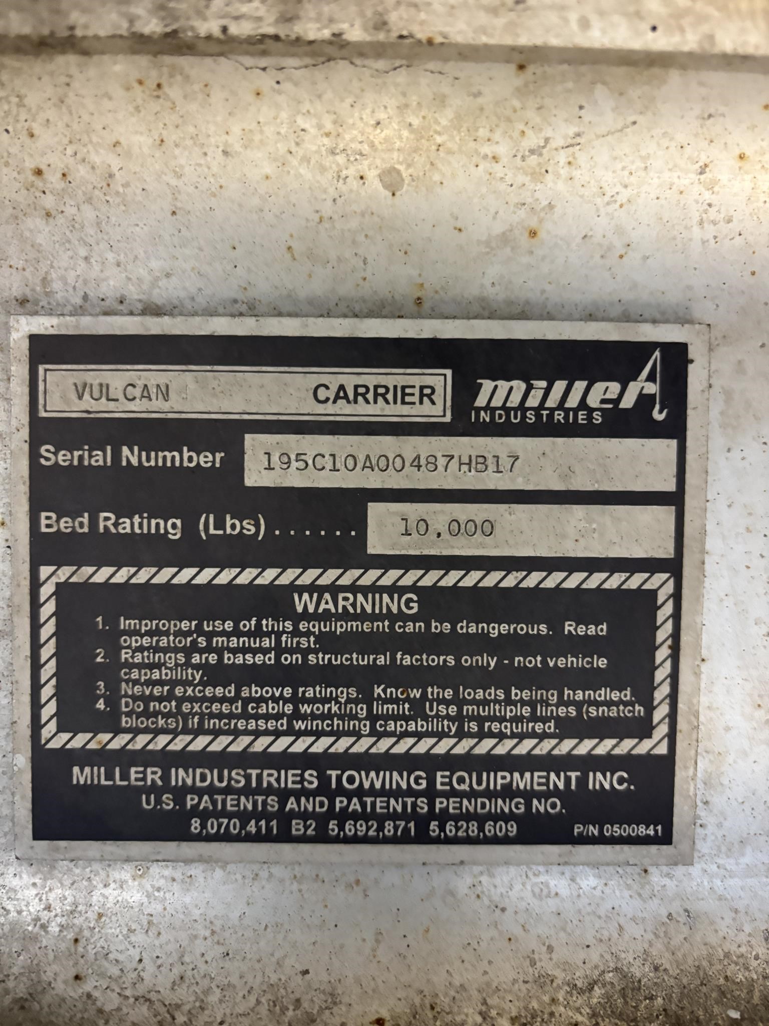 Century G-2 19.6" Aluminum Floor Rails (Aluminum) 4 Key Slot Package (Aluminum) 210" Full-Length Subframe Full-Length Slide Pads Right & Left Chain Trays Bed Anti-Tilt Lockout. Safety Chains (2-front, 2-rear) Positive Lock-down Painted with Black Acrylic Enamel (Subframe). Two Lift Cylinders Left & Right Side Illuminated Controls One Extension Cylinder, Federal Standard #108 LED Lighting Winch Clutch Release 8,000 lb. Hydraulic Winch w/50' Cable Cable Tensioner Full Function Wheel Lift System Cable Roller Guide Slide-In L-Arms with Anti-Theft Storage Tow Light Socket. Pre-Wired Electrical Junction Box Mud Flaps, Back-Up Lights & Alarm, Hydraulic Pump. Adjustable Rear Stabilizer. LED Light package included. Body SERIAL# 195C10A00487HB17