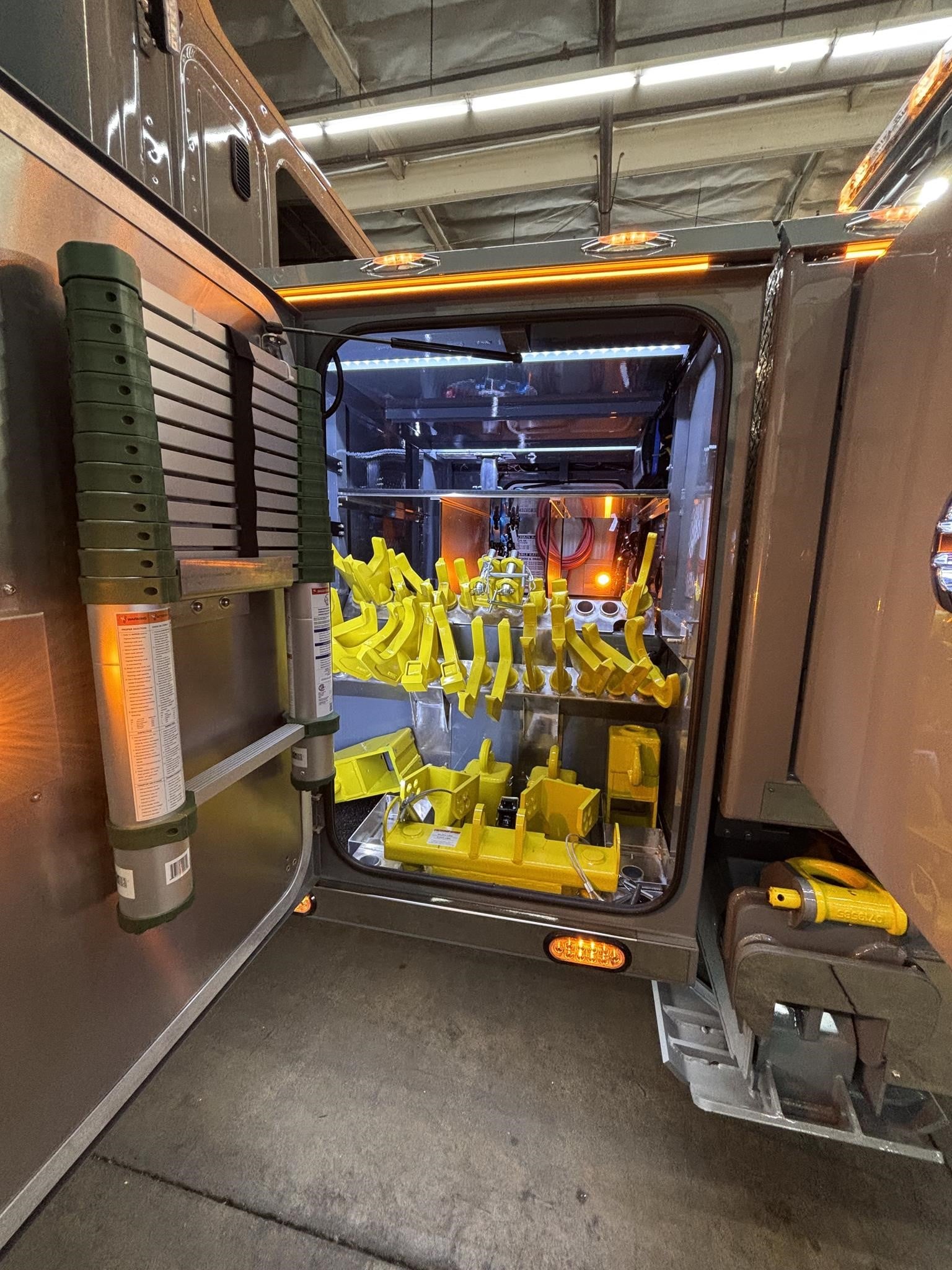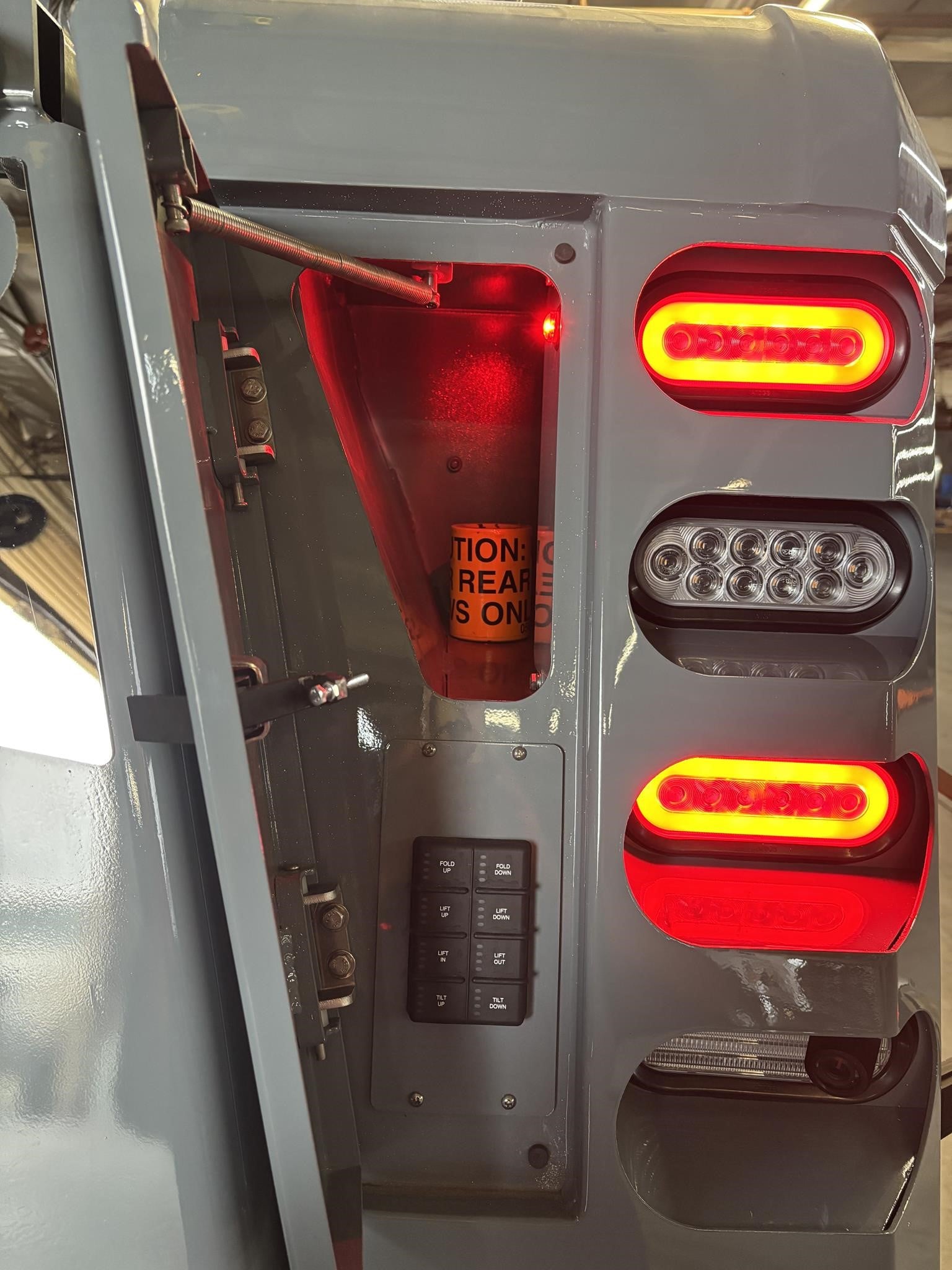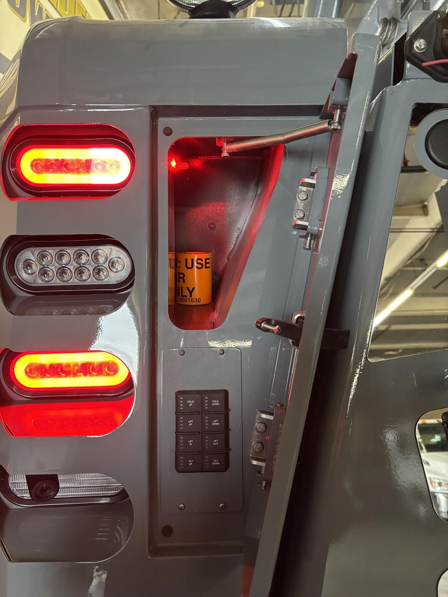 SLEEPER ROOF FOR (2) CUSTOMER FURNISHED BEACONS. (2) SWIVEL LED UTILITY LIGHTS MOUNTED HIGH LH AND RH BACK OF CAB, C-BAR MIRROR SYSTEM WITH DUAL HEATED MIRRORS WITH INTEGRAL HEATED